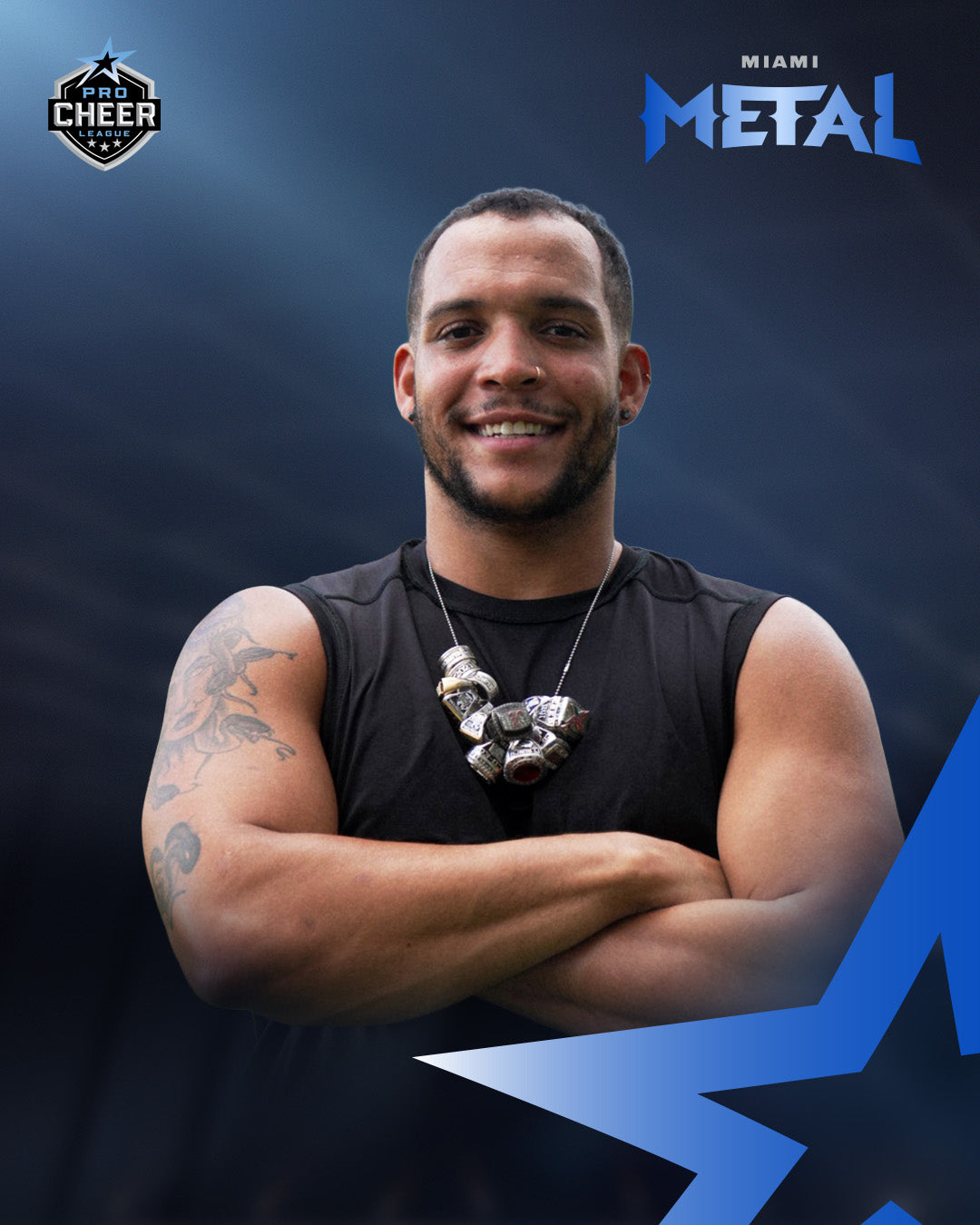 - Former NCA All-American in stunts, tumbling, and jumps